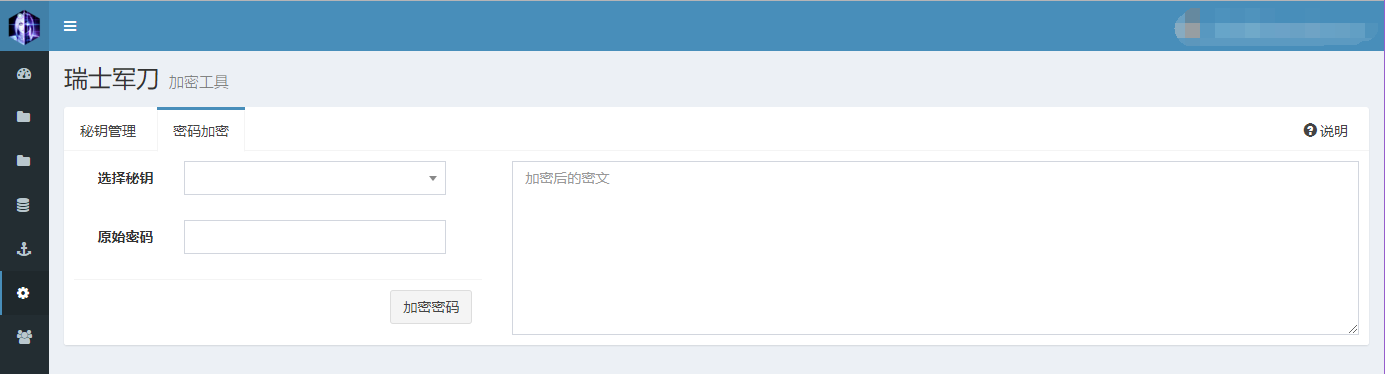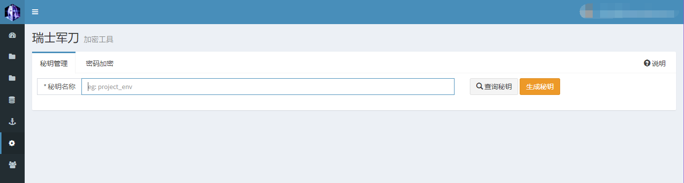 以上流程中,生成秘钥对和通过秘钥对密码进行加密我们已经在web端实现了这个功能,可以方便运维及DBA进行操作,界面如下: