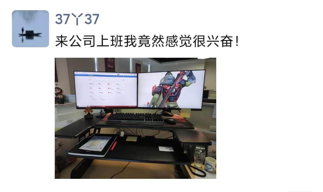 在家憋了一个月,跟公司申请到办公室上班(你没看错,上班还要申请),今天终于来了,难掩兴奋,于是就发了个朋友圈