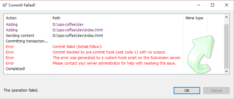 # chmod +x /home/svn/repos/ops-coffee/hooks/pre-commit