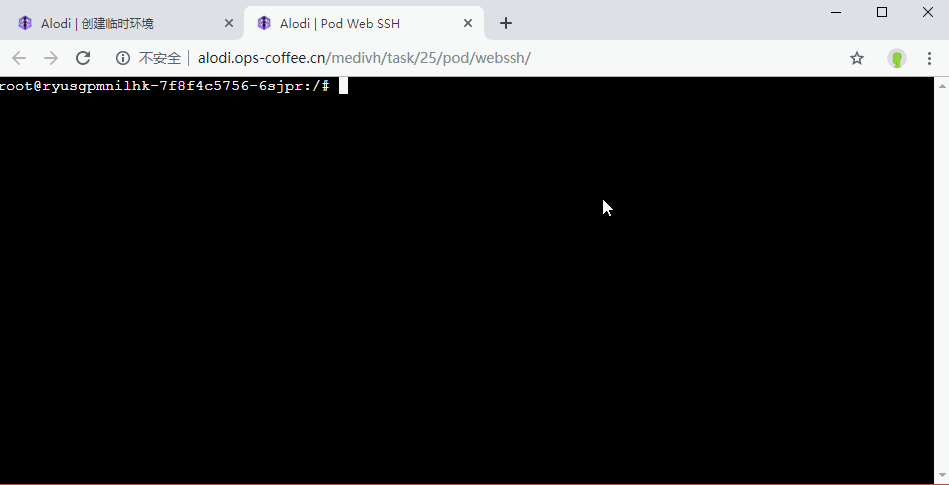 系统上线后,SSH登陆控制台成了一个迫切的需求,Kubernetes的Dashboard控制台虽然有WebSSH的功能,但却没办法跟Alodi系统相结合,决定在Alodi中集成WebSSH的功能,先来看看最后实现的效果吧